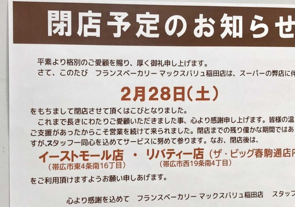 また、「店舗移転に伴う、閉店のご連絡」には、「移転準備中につきまして、一部商品が欠品しております」と記載されています。2つの案内には「3月上旬に閉店予定」と記載されていますが、店員さんに確認したところ、「ツルハドラッグ 帯広東4条店」の閉店日は2025年3月12日(水)を予定しているようです。