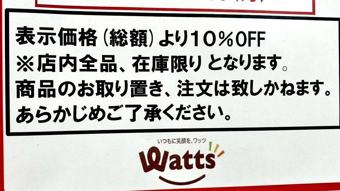 【帯広市】<閉店>日用品・雑貨の100円ショップ「ワッツ」(Watts)。帯広市内1店舗「誠に勝手ながら、2月28日(土)をもちまして閉店することとなりました。」