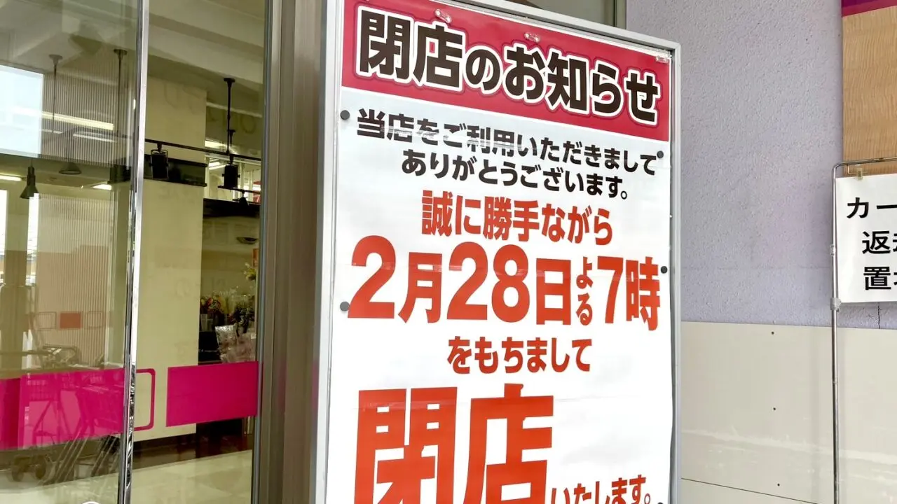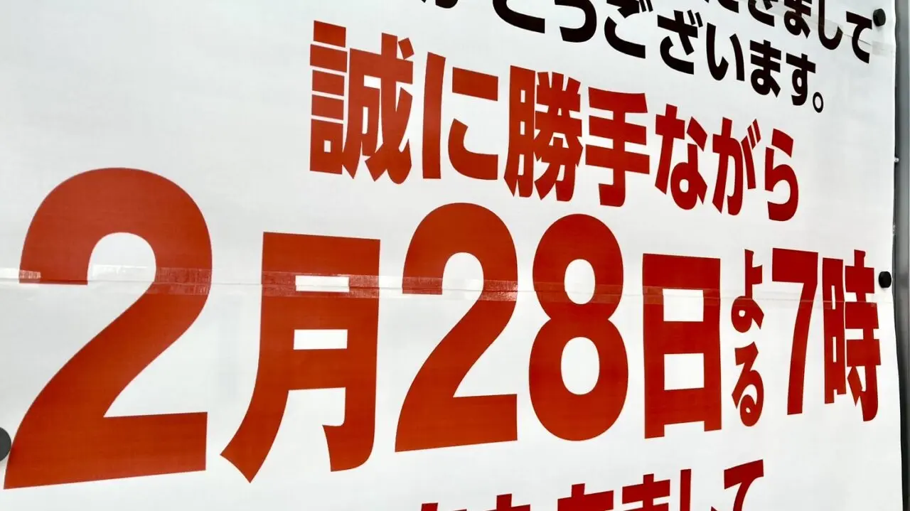 【帯広市】<閉店>約48年、地域のみなさんに愛されてきたスーパー。2026年「2月28日よる7時をもちまして 閉店いたします」と赤文字で大きく記載。帯広市西5条南35丁目。