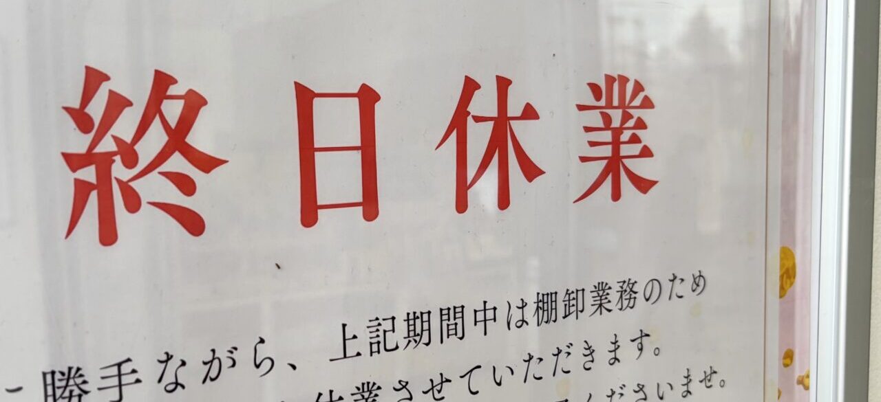 北海道河東郡音更町木野大通西12丁目1-10に店舗を構えている「岡書 おとふけ木野店」が、棚卸の為、売場の一部を休業することになったようです。店頭にも案内の「棚卸による休業のお知らせ」が掲示されています。