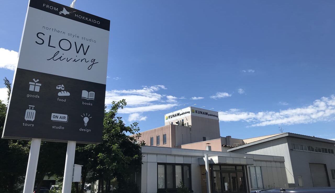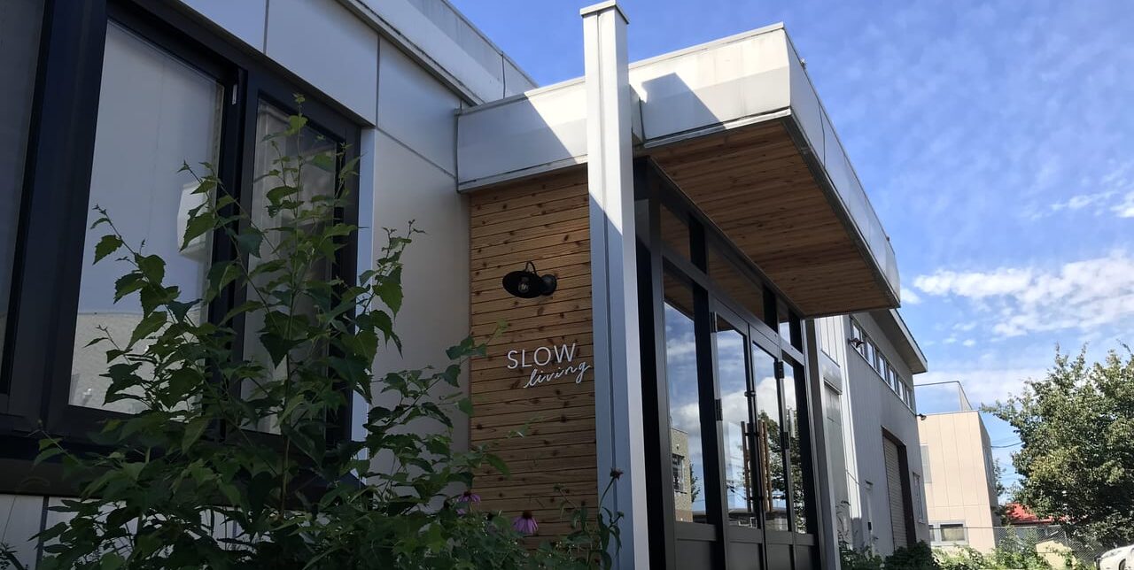 住所は帯広市西16条北1丁目26-1、国道38号線沿い「クナウパブリッシング」のすぐ東側に位置します。「SLOW living」はクナウパブリッシングが手がける「スロウ」の編集部によるショップで、道内作家のクラフトや雑貨、パンや焼き菓子等も扱っているお店です。
